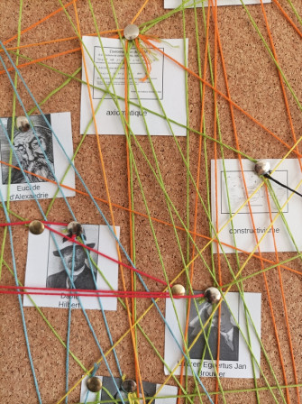 On peut bien définir une droite comme passant par deux points ou un plan comme contenant une droite et un point extérieur à celle-ci, les notions de points, de droites et de plans n’ont pas dans l’axiomatisation de la géométrie les significations qu’on leur accorde couramment en géométrie. Elles n’en ont aucune. Et on pourrait tout aussi bien les remplacer par d’autres signifiants – par « tables », « chaises » et « chopes de bière » avait l’habitude de plaisanter David Hilbert, père de l’axiomatique moderne – ou plus prosaïquement par des x, des y et des z.